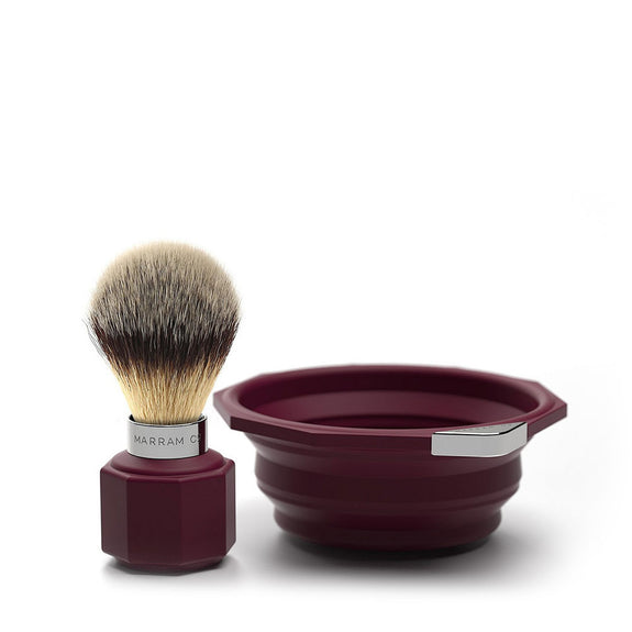 'POP' Travel Shaving Brush and Bowl - Burgundy
